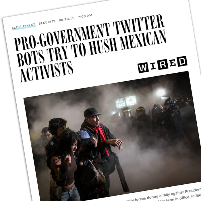 “Puede parecer insignificante preocuparse por los robots de Twitter en un país asediado por la violencia y la corrupción, pero los medios de comunicación sociales se ha convertido en una parte central del activismo en todo el mundo. Cuando [la comunicación social] se ve socavada, tiene efectos reales”, asegura Wired.